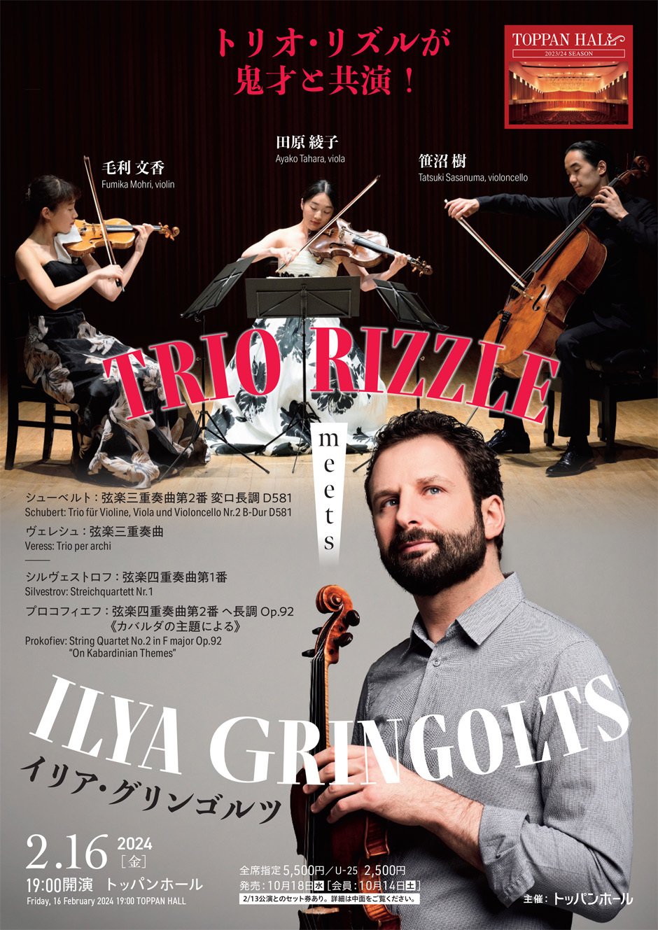 Trio Rizzle[毛利文香(ヴァイオリン)/田原綾子(ヴィオラ)/笹沼 樹(チェロ)]