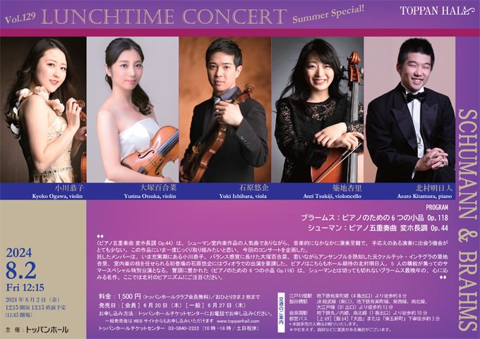 | 참가비 | 全席指定 1,500円/トッパンホールクラブ会員無料(要予約)*お一人様2席まで |