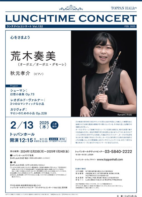 〈ランチタイムコンサート Vol.132〉荒木奏美(オーボエ、オーボエ・ダモーレ)【入場無料/受付終了】