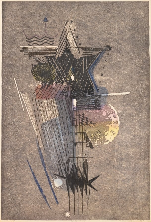 早稲田大学予科を中退して1914年に渡米した北川はニューヨークで絵画の基礎を学んだ後、1920年代前半にメキシコに向かいます。同地で壁画運動をはじめとした同時代の美術や民衆芸術を吸収して独自の絵画表現を確立し、1936年に帰国、二科会を中心に創作活動を展開してゆきました。一方、アメリカの日系移民の二世で本学で建築を学ぶために来日した安瑆と、小磯良平に師事するなど絵画技法を習得した俊子は、それぞれ第二次世界大戦後の早い時期に東京と神戸で美術家としての活動を開始します。1954年に結婚した2人は1959年に渡米、1960年以降はニューヨークを拠点に版画家として、また立体作家としてさらなる飛躍を遂げました。