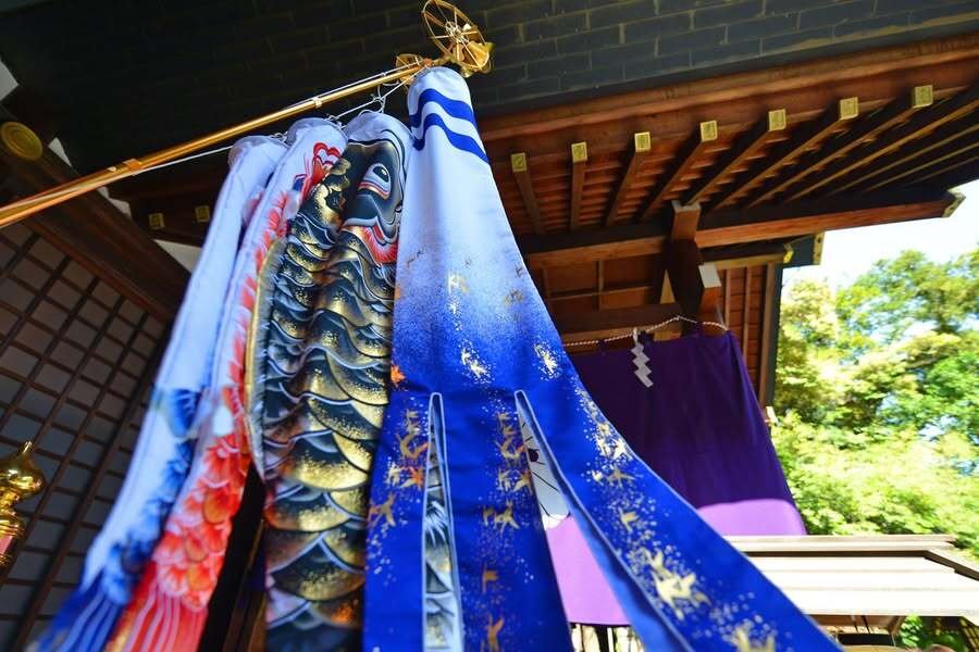 東京大神宮では、今年も社殿の回廊に鯉のぼりを掲げます。