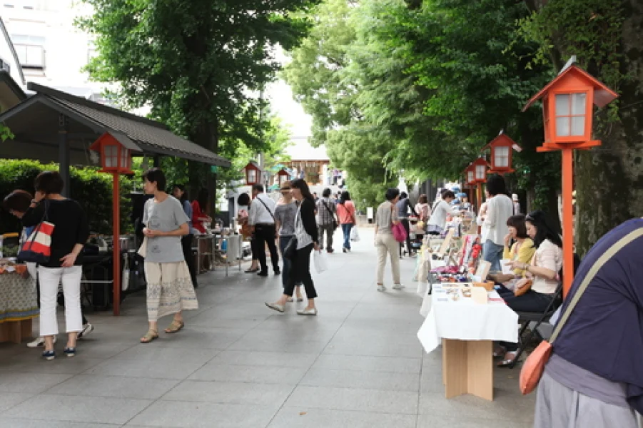 アクセサリーや雑貨、和小物など、こころ華やぐ手づくり作家のたちのお店が境内に並びます。