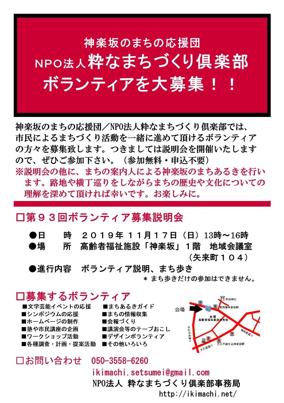 | 장소 | 高齢者福祉施設「神楽坂」1階 地域会議室(矢来町104) |