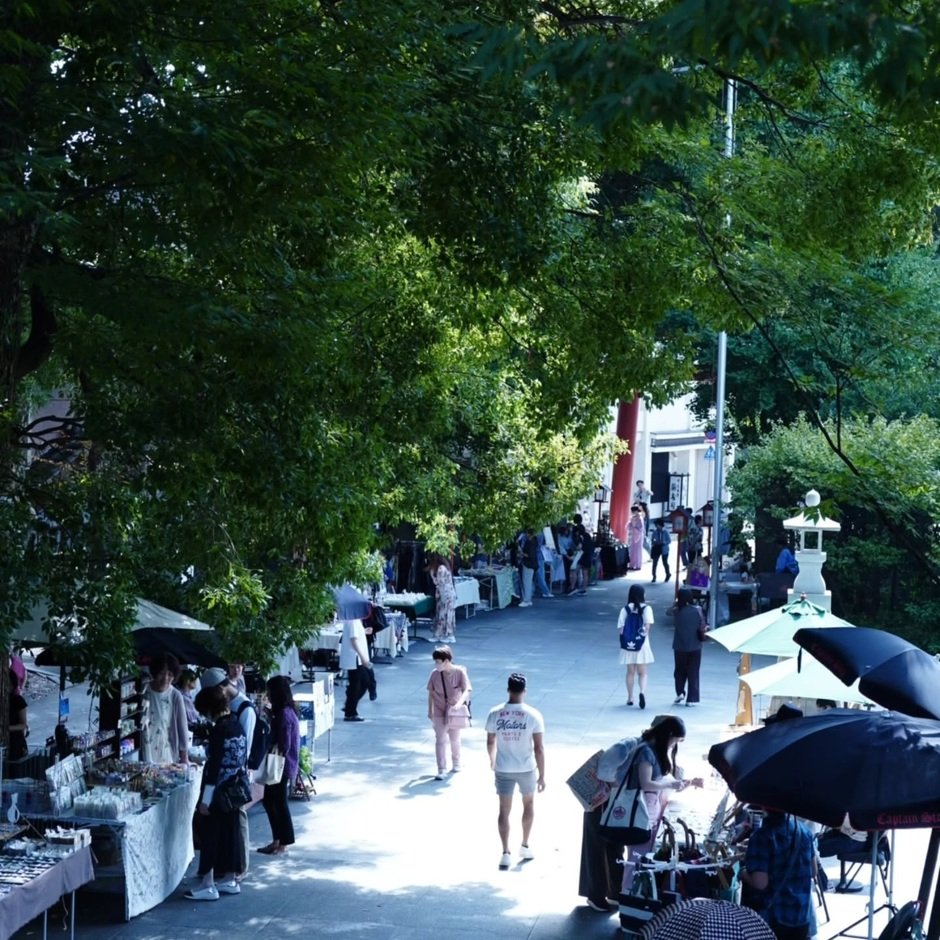 アクセサリーや雑貨、和小物など、こころ華やぐ手づくり作家のたちのお店が境内に並びます。