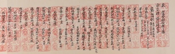 今回展示する『東大寺献物帳』書写本は、長年にわたり東京国立博物館で大仏蓮弁刻画や正倉院宝物研究を担われ、また本学第一文学部や日本女子大学でも教鞭をとられた奥村秀雄氏によって書写されたものです。用紙の選定、天皇御璽の模刻押印、表装の仕立てにいたるまで、原本にできるだけ忠実に制作された全巻の書写本は稀であり、原本が一般に公開される機会がほとんどない中で、貴重な存在といえるでしょう。