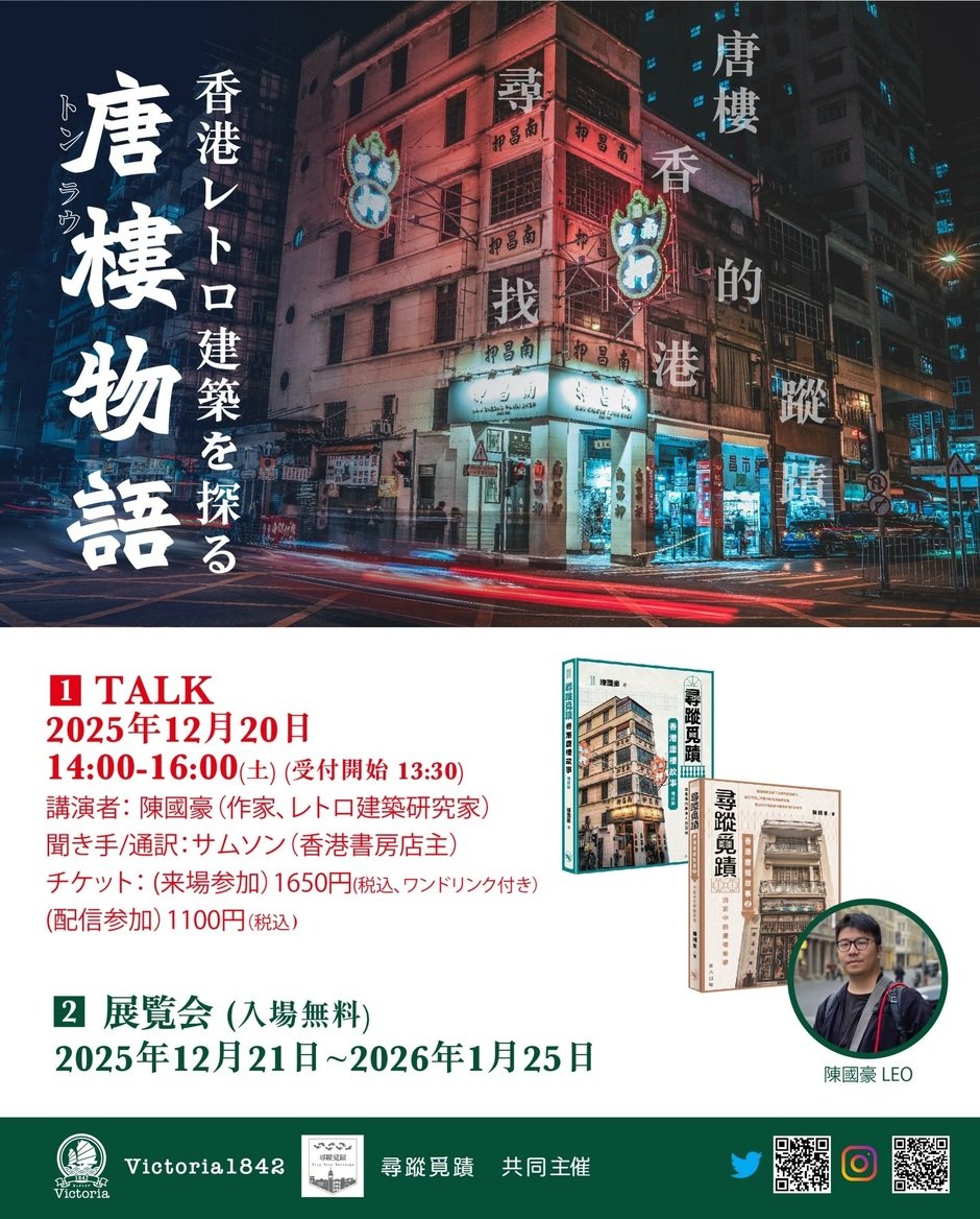 この問いを手がかりにしたイベント「唐樓(トンラウ)物語:香港レトロ建築を探る」が、2025年12月20日よりVictoria 1842で開催。初日は講演形式のトークイベント「PART 1」、翌日からは写真展「PART 2」がスタートし、香港の街並みを形づくった建築文化に多角的に触れられる内容となっています。