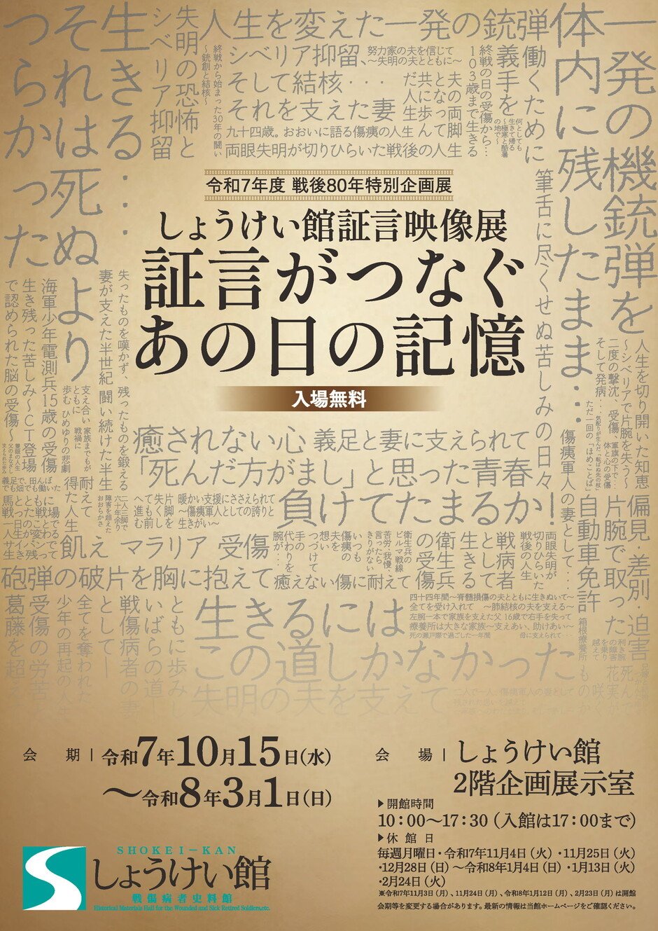 【入館無料】しょうけい館証言映像展 証言がつなぐ あの日の記憶 -戦後80年 特別企画展-