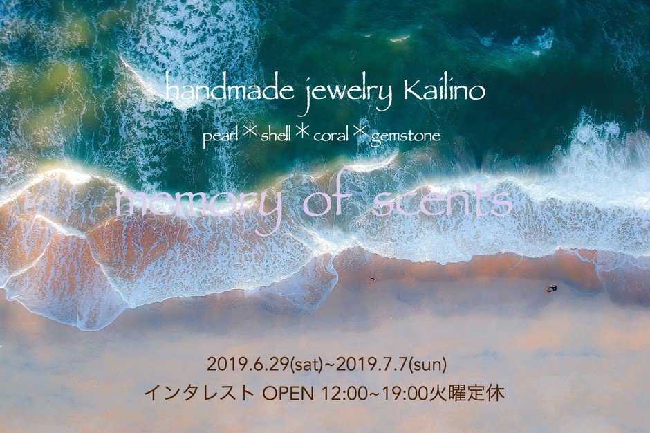 6月29日(土)~7月7日(日)の会期で、飯野玉青さんによるハンドメイドジュエリーブランド「Kailino(カイリノ)」より、2019年の新作コレクション”memory of scents”をお披露目する、1年に一度の展示販売会(ポップアップショップ)を開催いたします。