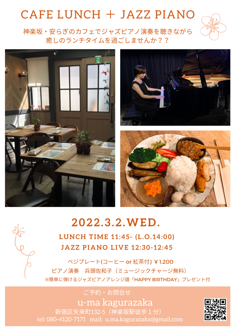 Lunch Plate ¥1,200 ( Plate + Coffee or Tea) Piano演奏 兵頭佐和子