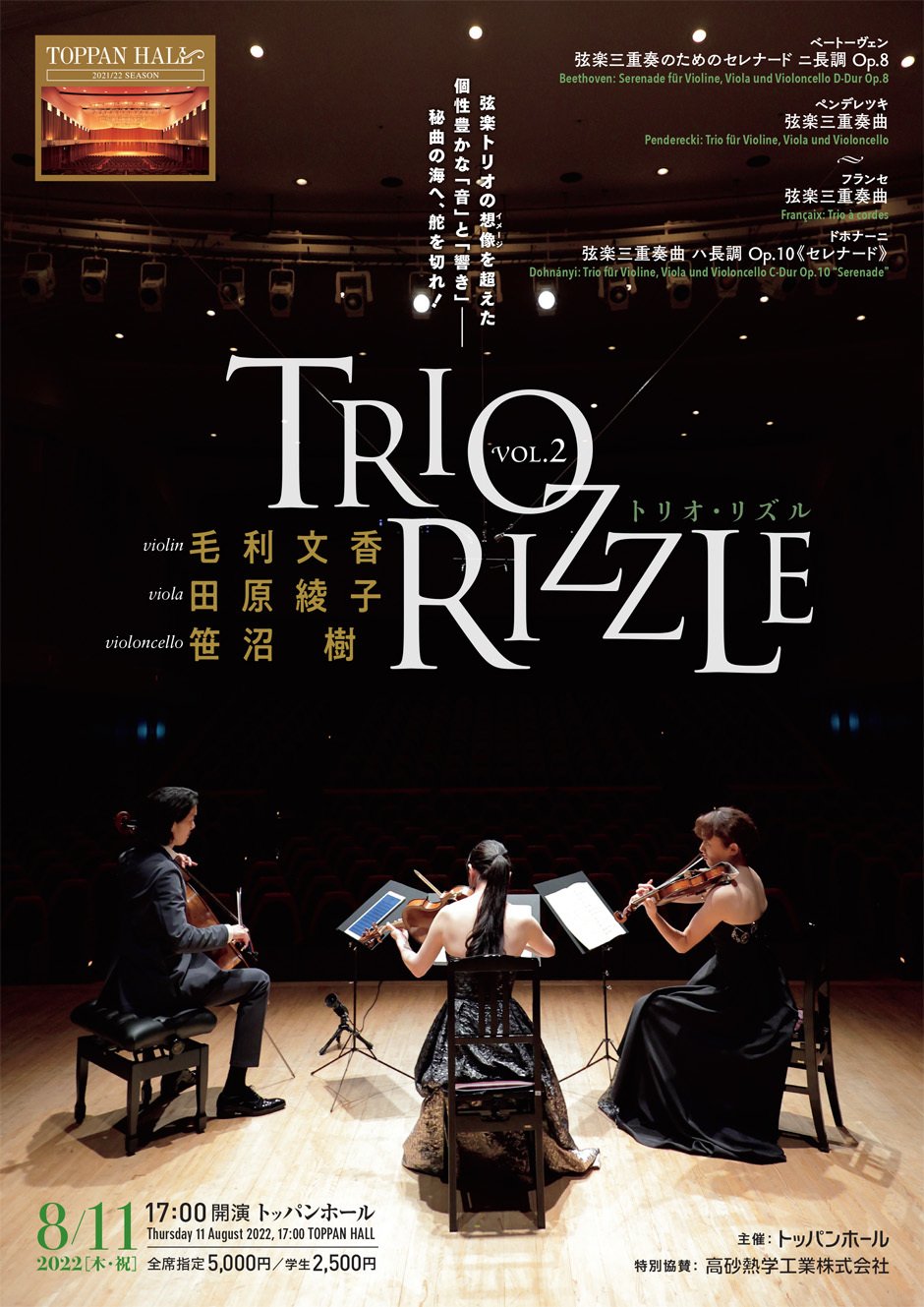 Trio Rizzle トリオ・リズル[毛利文香(ヴァイオリン)、田原綾子(ヴィオラ)、笹沼 樹(チェロ)]