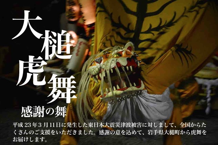 平成23年3月11日に発生した東日本大震災津波被害に対しまして、全国からたくさんのご支援をいただきました。感謝の意を込めて、岩手県大槌町から虎舞をお届けします。
