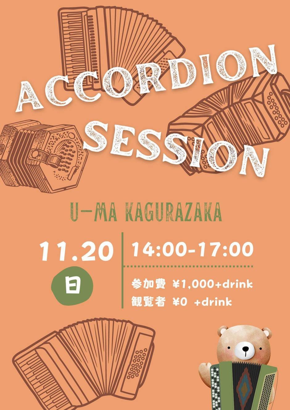 | 참가비 | MC:演奏される方¥1,000+1order 演奏されない方:1order |