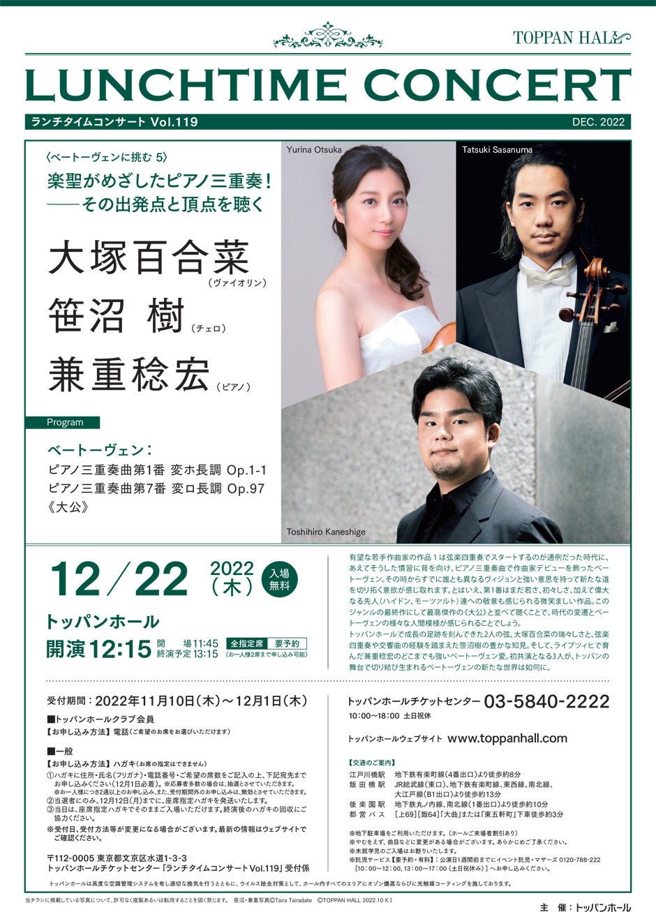 大塚百合菜(ヴァイオリン)/笹沼 樹(チェロ)/兼重稔宏(ピアノ)