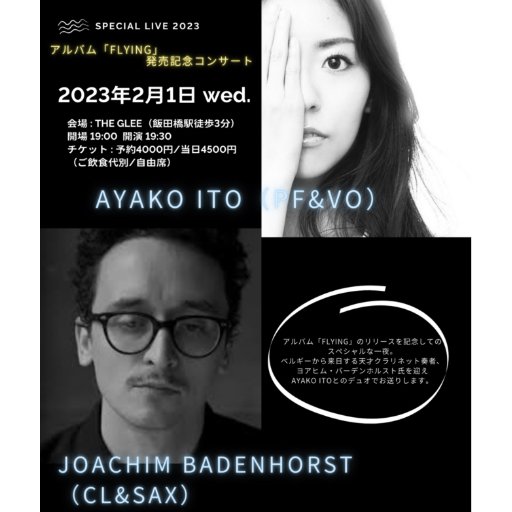 ベルギーから来日する天才クラリネット奏者ヨアヒム・バーデンホルスト氏を迎えAYAKO ITOとのデュオでお送りします。