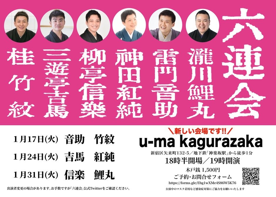 1/17,24,31(火) 落語
