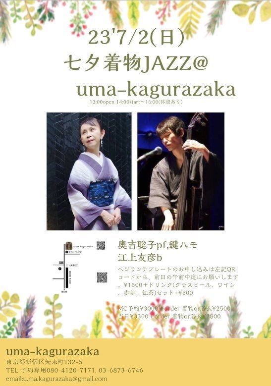 7/2(日)奧吉聡子: Pf. & 鍵盤ハモ 江上友彦: B.