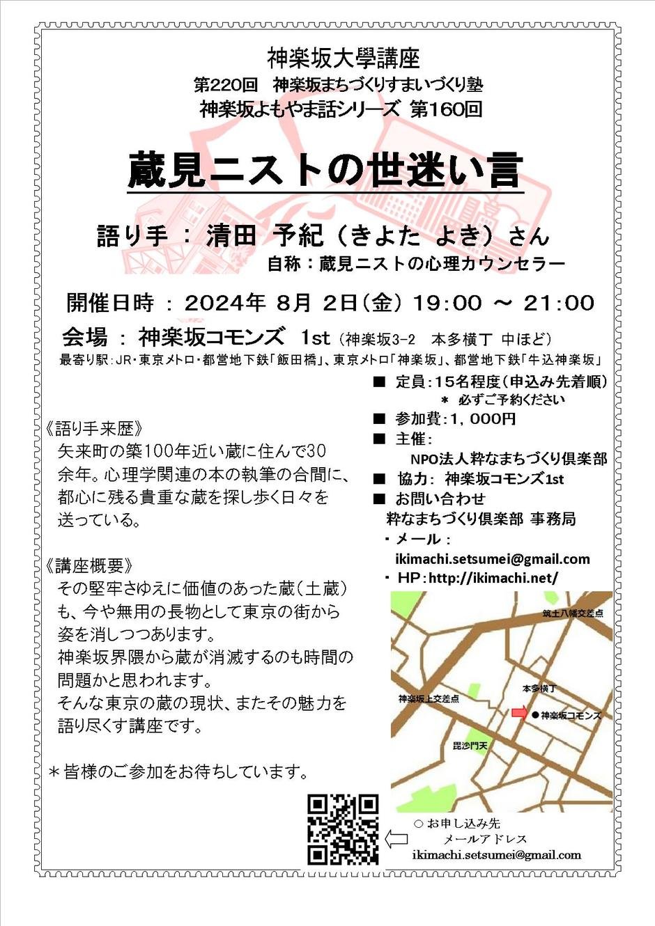 | 장소 | 神楽坂コモンズ 1F (神楽坂3-2 本多横丁 中ほど) 最寄り駅:JR・東京メトロ・都営地下鉄「飯田橋」、東京メトロ「神楽坂」、都営地下鉄「牛込神楽坂」 |