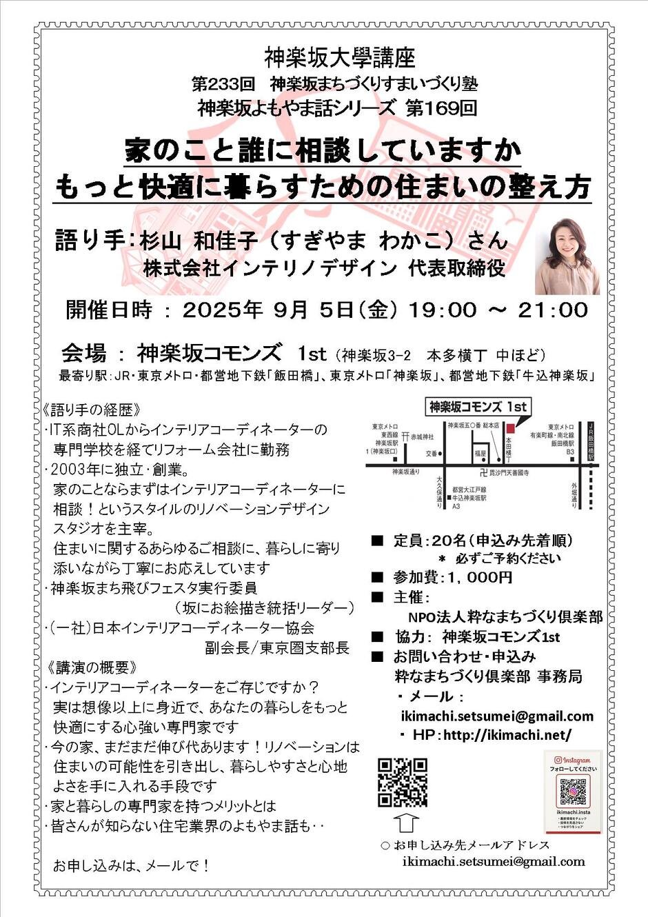 | 장소 | 神楽坂コモンズ 1st (神楽坂3-2 本多横丁 中ほど) 最寄り駅:JR・東京メトロ・都営地下鉄「飯田橋」、東京メトロ「神楽坂」、都営地下鉄「牛込神楽坂」 |