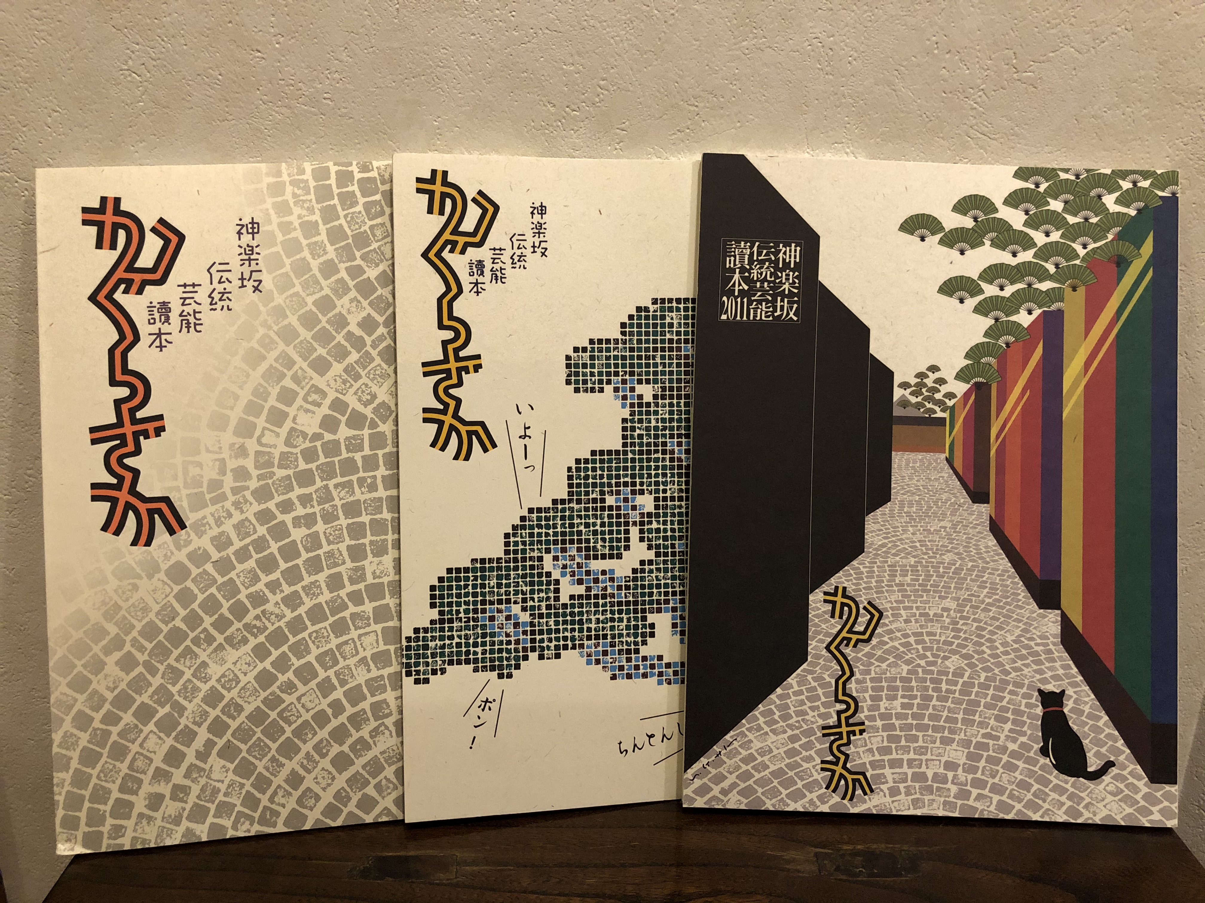 神楽坂という土地が長年培ってきた文化で、花柳界の存在を忘れることはできません。はじめは“まちに飛びだした美術館”というコンセプトからスタートしたイベントでしたが、まちともっと広く深い関りを求めて、神楽坂花柳界のもっている大きな潜在能力にふれることになります。こうした神楽坂ならではの恵まれた地域文化資産を力に、順風満帆に発展したイベントですが、2011年の東日本大震災で大きなブレーキがかかります。その後の苦しいイベント低迷の時代を経て、再び千客万来の時代へ。 |